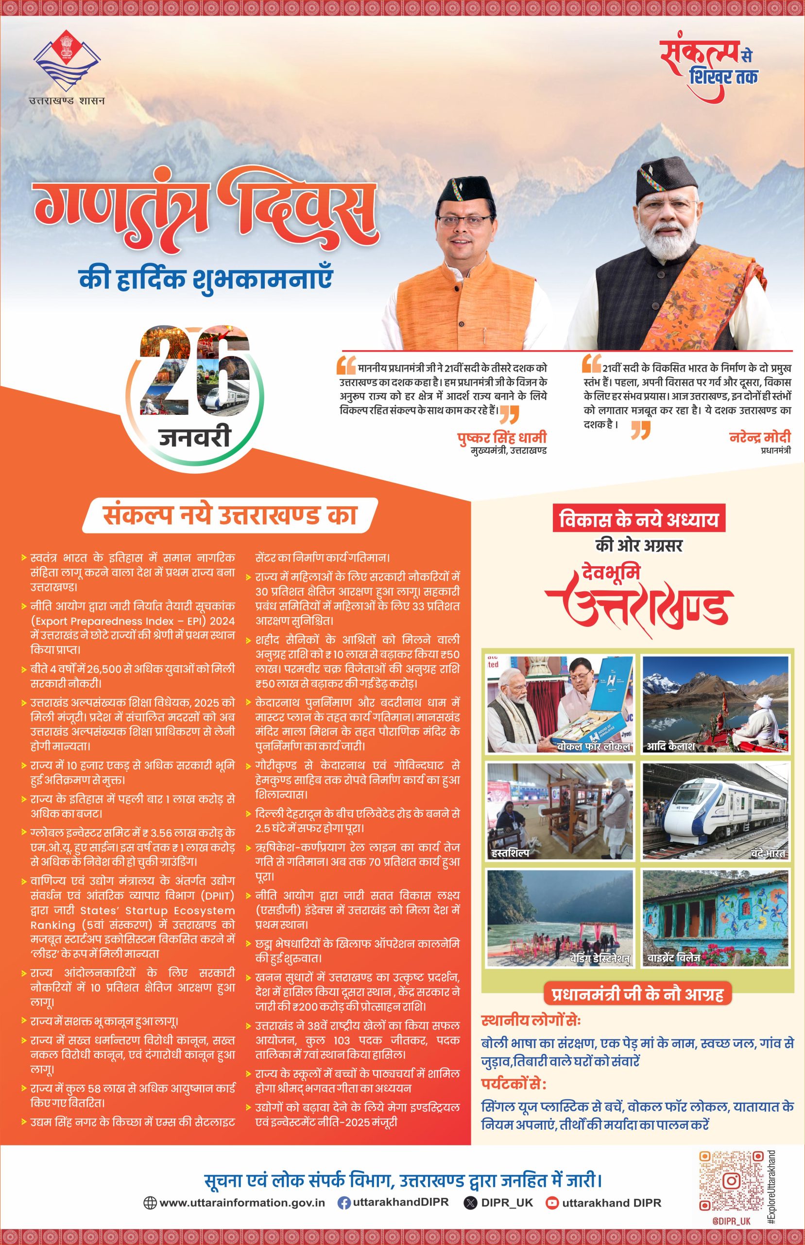 गणतंत्र दिवस पर आधारित विज्ञापन रंगीन / ध्श्वेत श्याम 1716 वर्ग सेंटीमीटर आकार में विभाग में सूचीबद्ध डीएवीपी / विभागीय दर पर दैनिक / सांध्य दैनिक समाचार पत्रों में दिनांक 26 जनवरी 2026 में एक बार प्रकाशनार्थ तथा साप्ताहिक, पाक्षिक, मासिक तथा त्रैमासिक समाचार पत्र / पत्रिकाओें में 950 / 450 वर्गसेमी. श्वेत श्याम आकार में दिनांक 26 जनवरी 2026 अथवा उसके तत्काल बाद प्रकाशित होेने वाले अंक में एक बार प्रकाशनार्थ। ( अमर उजाला उत्तराखण्ड, दैनिक जागरण उत्तराखण्ड, हिन्दुस्तान उत्तराखण्ड, पायनियर, शाह टाइम्स, गढ़वाल पोस्ट , उत्तर उजाला, हिमाचल टाइम्स देहरादून को छोड़कर)