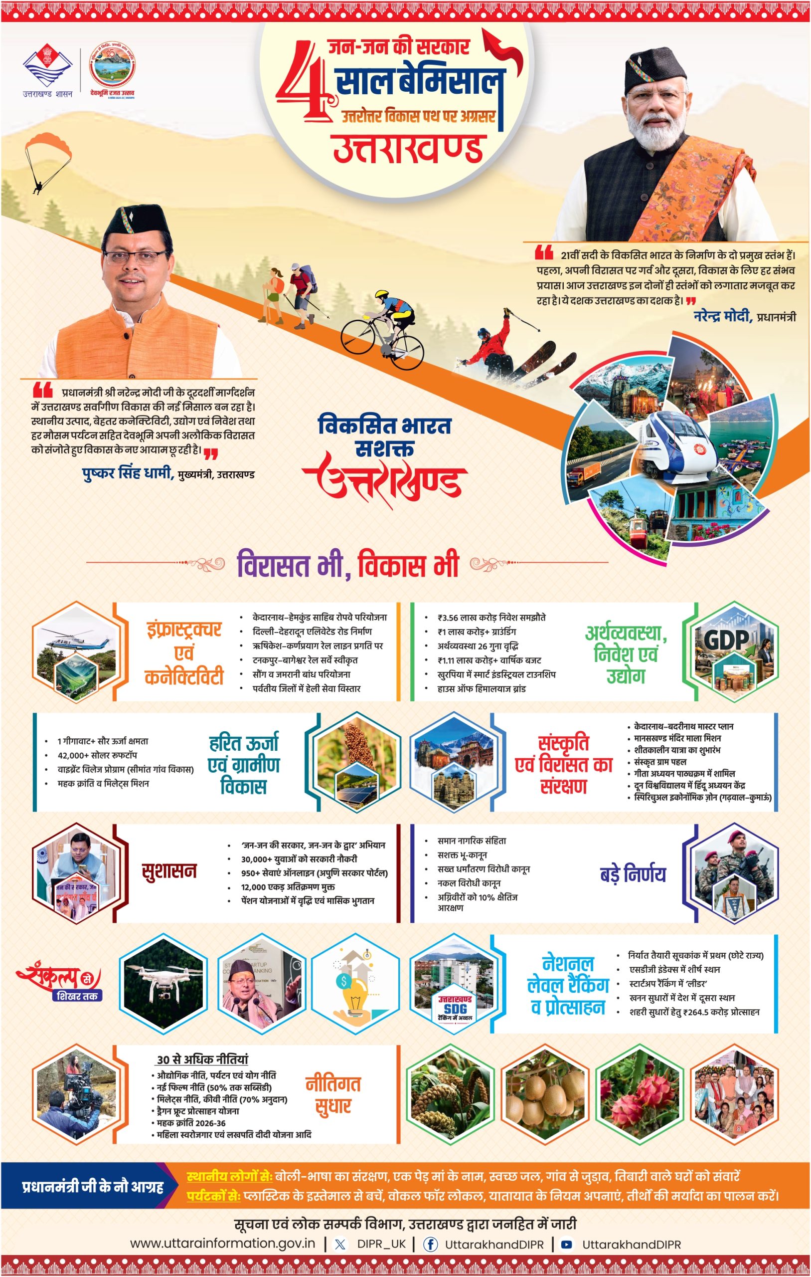 सरकार के चार वर्ष पर आधारित विज्ञापन 1716 वर्ग सेमी रंगीन/श्वेत एवं श्याम आकार में राज्य के सूचीबद्ध दैनिक/सांध्य दैनिक समाचार पत्रों में 23 मार्च 2026 को एक बार प्रकाशित किया जाना है, तथा साप्ताहिक, पाक्षिक, मासिक एवं त्रैमासिक समाचार पत्रों/पत्रिकाओं में 950/ 450 वर्ग सेमी श्वेत एवं श्याम आकार में 23 मार्च 2026 को प्रकाशित अंक में या उसके तुरंत बाद प्रकाशित होने वाले अंक में एक बार प्रकाशित किया जाना है। (अमर उजाला उत्तराखंड, दैनिक जागरण उत्तराखंड, हिंदुस्तान उत्तराखंड, शाह टाइम्स, गढ़वाल पोस्ट, उत्तर उजाला, हिमाचल टाइम्स, पायनियर देहरादून को छोड़कर)
