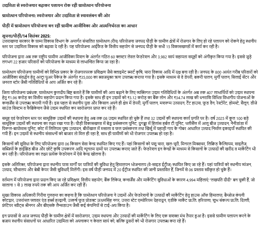 ✵ उद्यमिता से स्वरोजगार बढ़ाकर पलायन रोक रही ग्रामोत्थान परियोजना डाउनलोड अनुलग्नक : ⚜