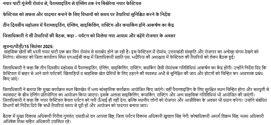 ✵ नयार घाटी गूंजेगी रोमांच सेए पैराग्लाइडिंग से एंग्लिंग तक रंग बिखेरेगा नयार फेस्टिवल डाउनलोड अनुलग्नक : ⚜
