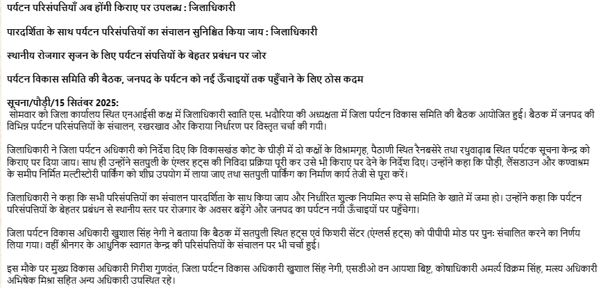 ✵ पर्यटन परिसंपत्तियाँ अब होंगी किराए पर उपलब्ध रू जिलाधिकारी डाउनलोड अनुलग्नक : ⚜