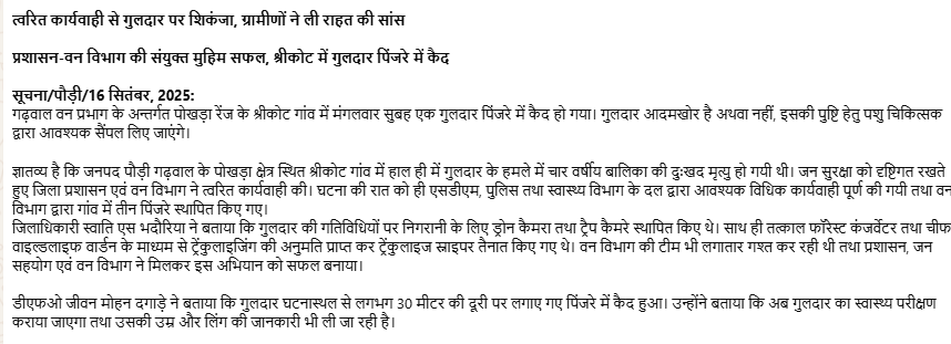 ✵ त्वरित कार्यवाही से गुलदार पर शिकंजाए ग्रामीणों ने ली राहत की सांस डाउनलोड अनुलग्नक : ⚜