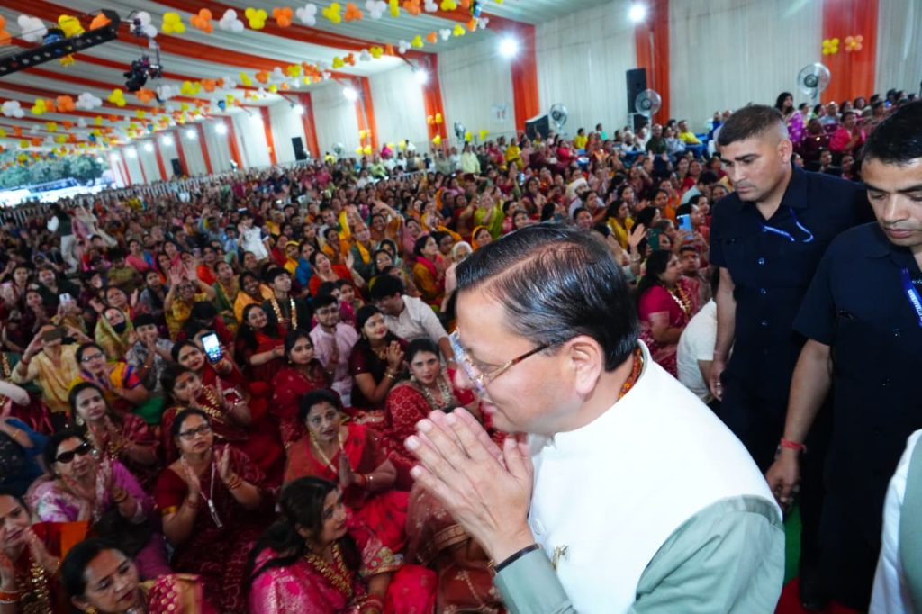 देहरादून में श्रीमद्भागवत कथा में शामिल हुए मुख्यमंत्री पुष्कर सिंह धामी।