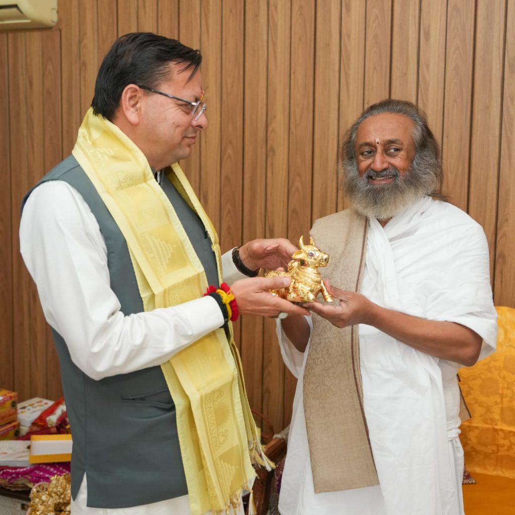 मुख्यमंत्री धामी ने ऋषिकेश में श्री श्री रविशंकर से शिष्टाचार भेंट की।