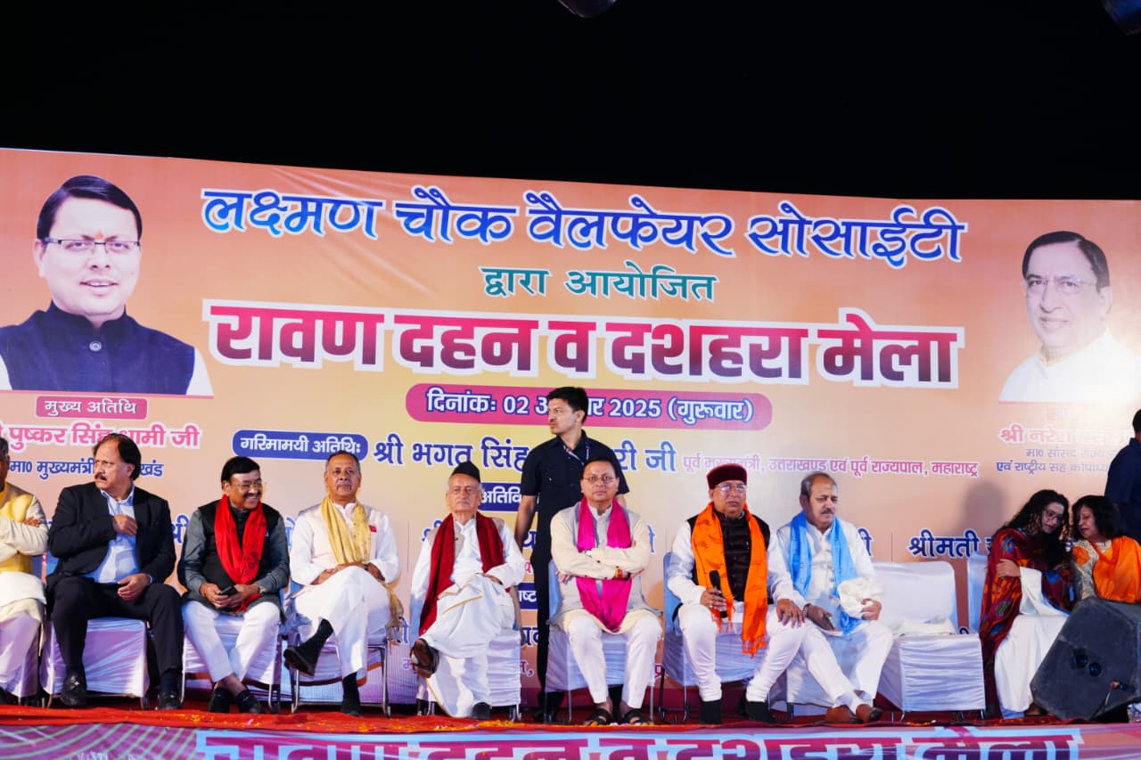 सीएम धामी विजयदशमी पर लक्ष्मण चैक, देहरादून में आयोजित दशहरा महोत्सव व रावण दहन में हुए शामिल